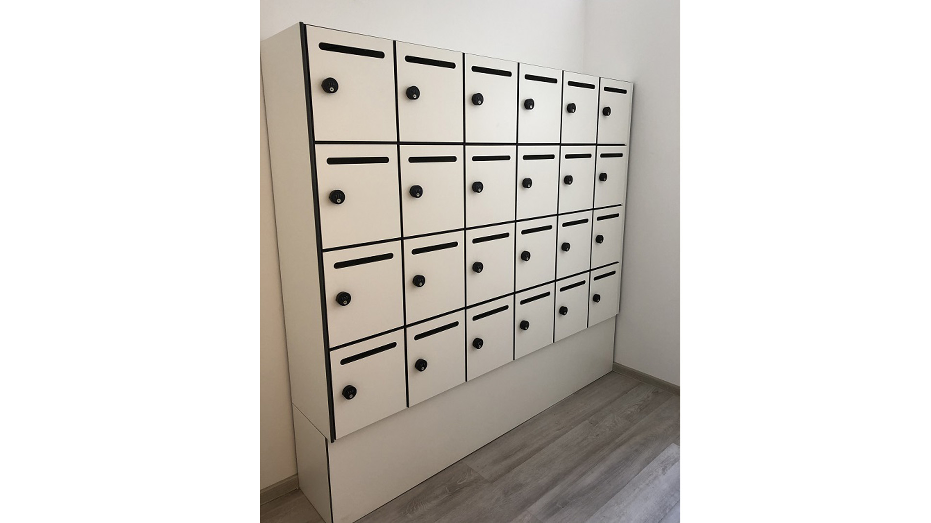 Die Schließfachschränke aus HPL-Material konnten wir individuell nach Wünschen und auf Maß für unseren Kunden fertigen. Mit den Briefeinwurfschlitzen ist es eine Erleichterung für die Mitarbeiter persönliche Briefe oder ähnliches für jeden einzelnen Mitarbeiter sicher und geschützt einzuwerfen. Mit der Schließung über das Zahlenschloss A170 ist der Aufwand der Schlüsselverwaltung hiermit auch ein Ende gesetzt. Des Weiteren ist die Handhabung der Schließung kinderleicht und sollte dennoch ein Code vergessen werden, gibt es hierzu einen Notöffnungsschlüssel mit dem man den Code wieder finden kann.