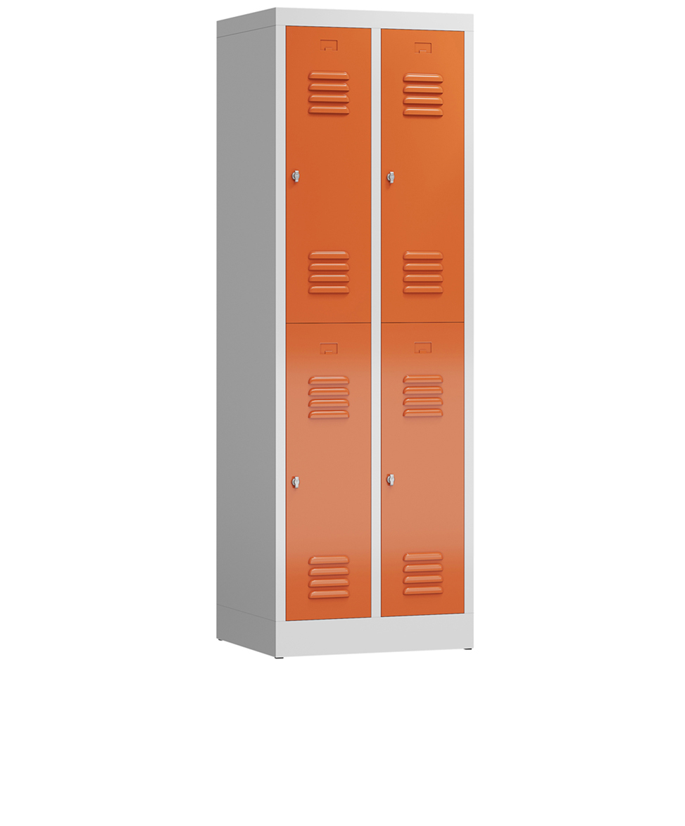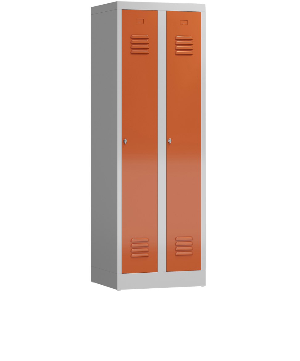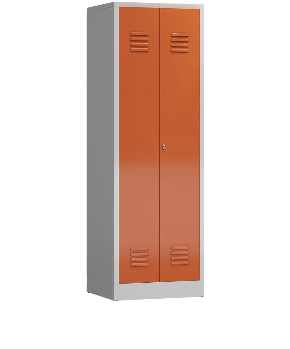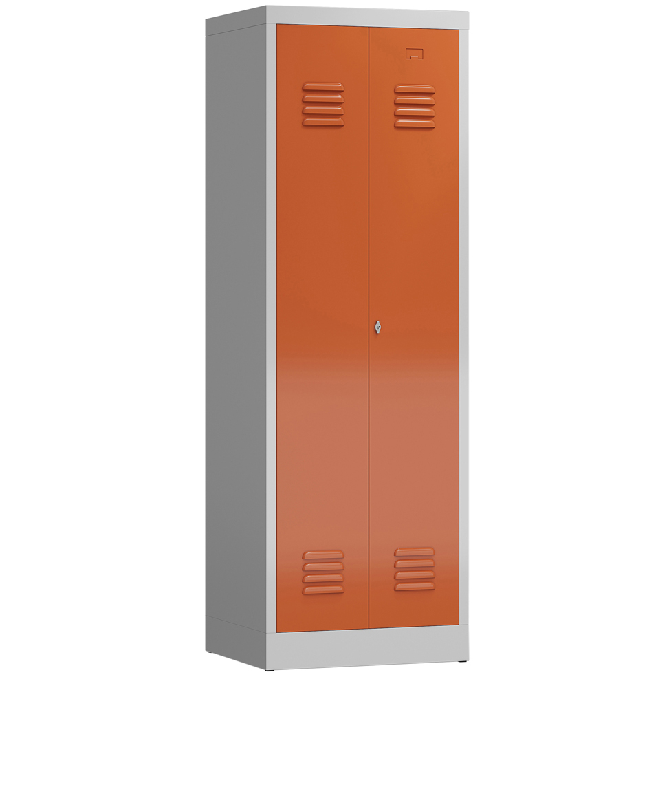 Jeder Schrank ist mit einer Kleiderstange, Haken und bei durchgehenden Fächern mit Hutboden ausgestattet und bietet ausreichend Stauraum. Bei doppelstöckigen Spinden ist kein Hutboden vorhanden. Mit individuellen Zusatz-Features wie Verriegelung oder Schuhschalen lässt sich die Serie IdealSpind Ihren ganz speziellen Anforderungen anpassen.